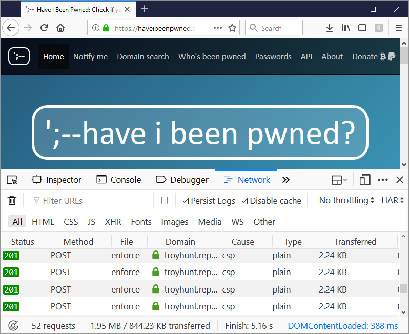 - document-uri: It's attempting to load it into the DOM when someone visits the home page of HIBP (you can see from the earlier image that this is also happening on other pages on HIBP, as well as on my blog)