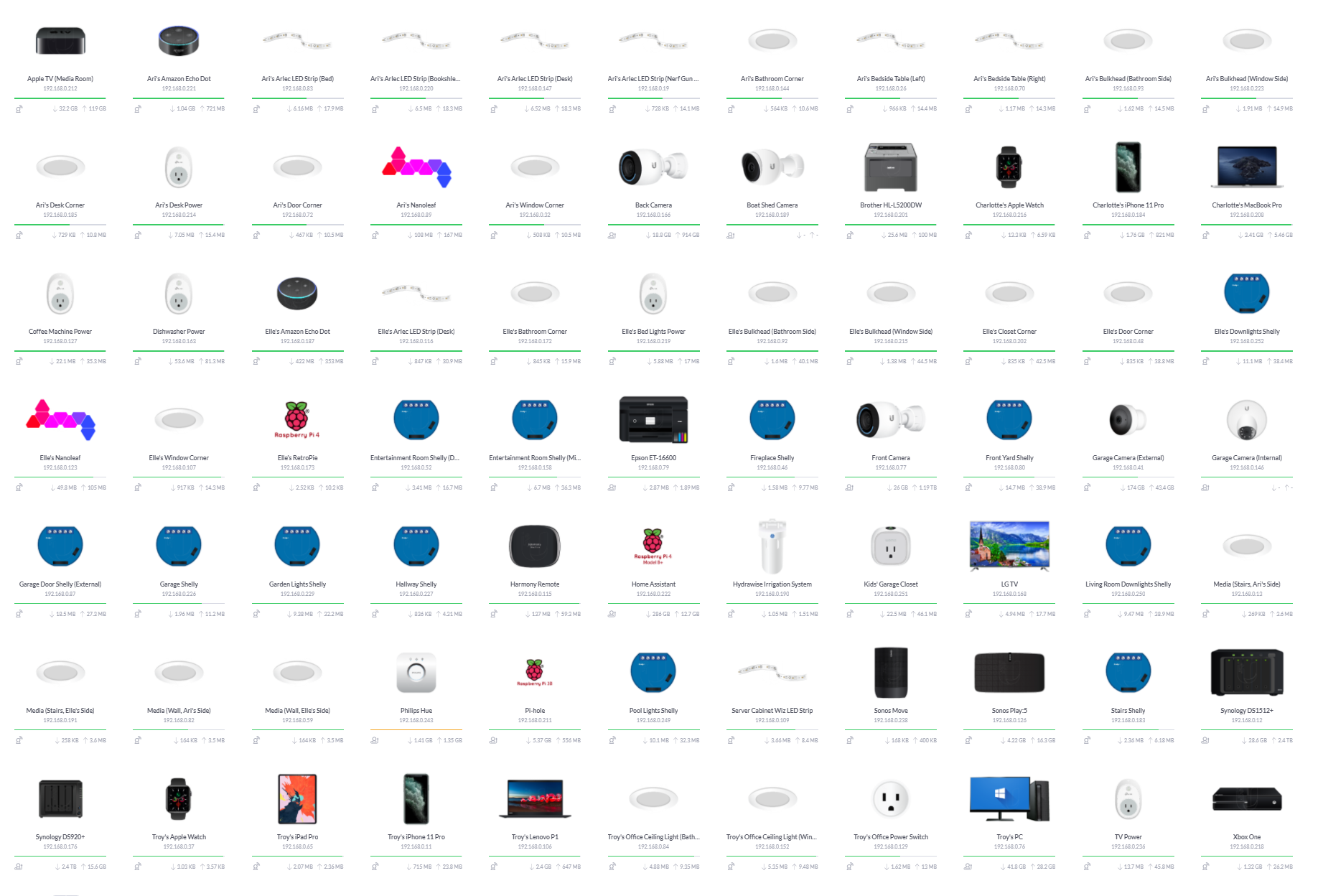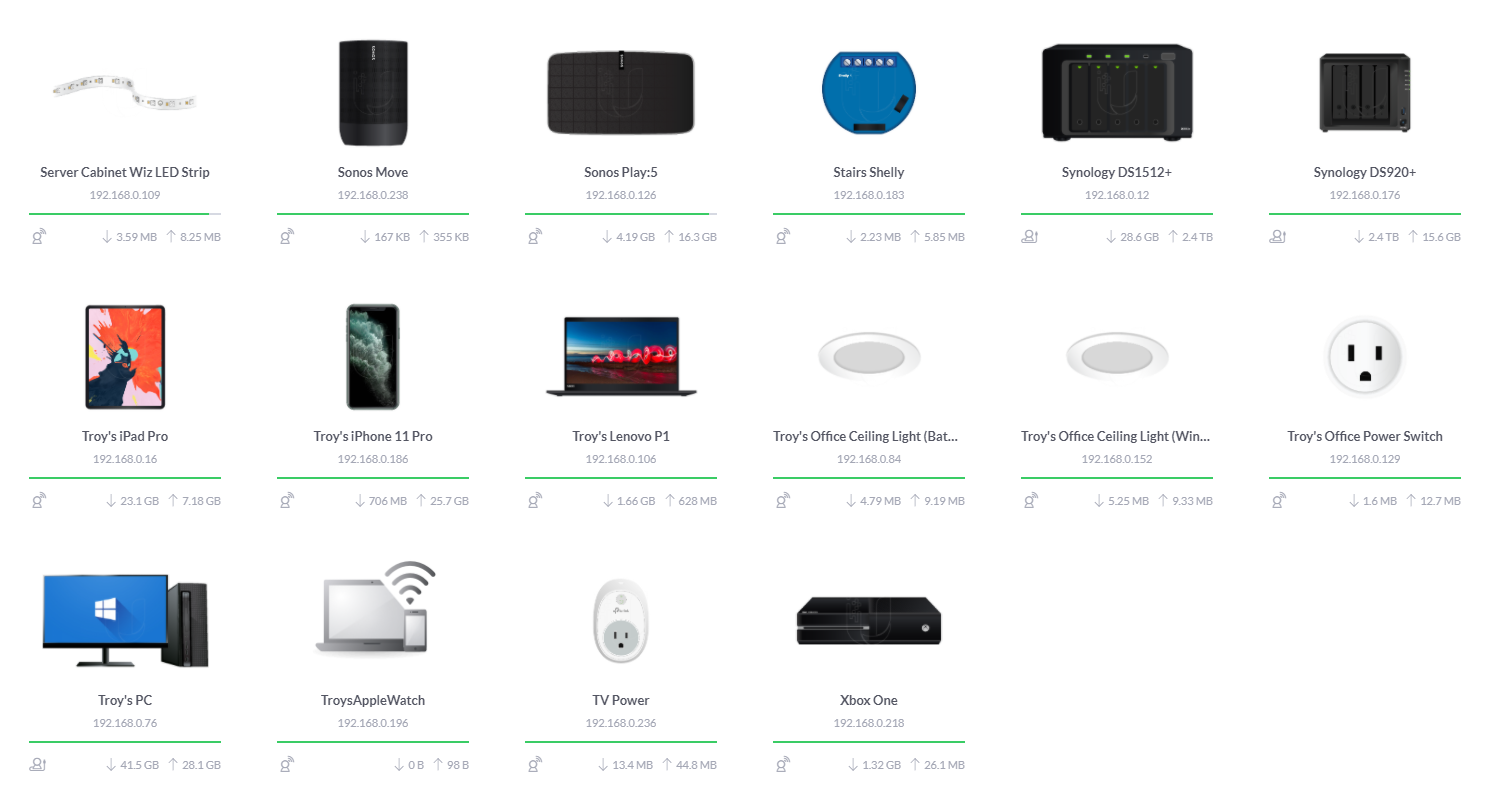That's just a slice of my Ubiquiti network map which presently has 91 IP addresses on it between clients and network devices. Each one has been meticulously customised by both name and icon so that it's immediately recognisable on the map. For example, the Nanoleaf in my daughter's room has the correct image associated to it and her name alongside it so I can easily differentiate it from the one in my son's room. Like I say, network proud, so you can imagine my horror when confronted with the image below: