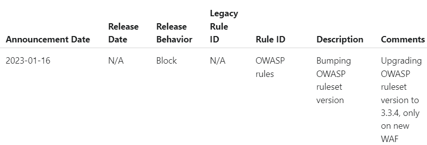 Please note that we did bump the OWASP version, which we are integrating with to 3.3.4 as noted on our scheduled changes.