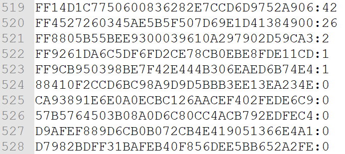 So, where does the padding come from? Let's take that 9e823 hash prefix (remember, it previously had 523 results) and see what it looks like now: