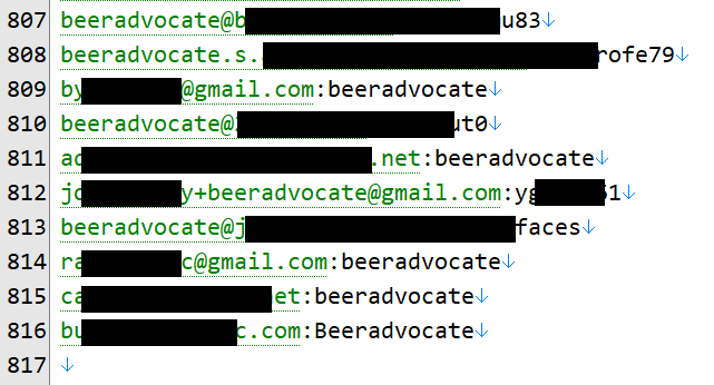 Well that's... damning. You simply don't have that many matches without there being a very high likelihood BeerAdvocate had suffered a data breach. For every one instance of an email address or password with the string "beeradvocate" in it there'll be another 100 instances that still came from their service but didn't use a customised email alias or (let's face it) very poorly chosen password. On the balance of evidence, they had indeed been breached and their data rolled in with at least the two other organisations into what was now effectively a credential stuffing list.