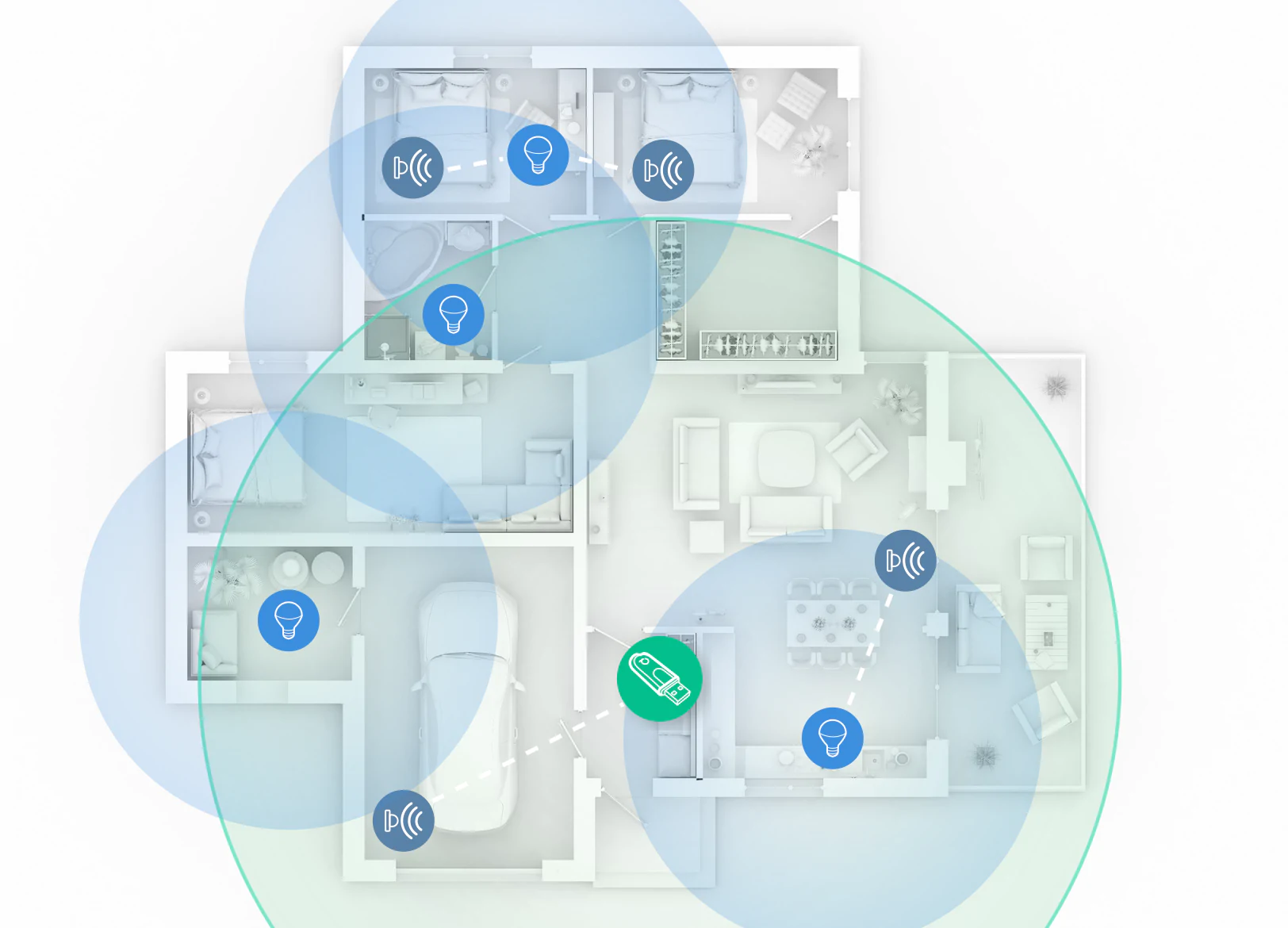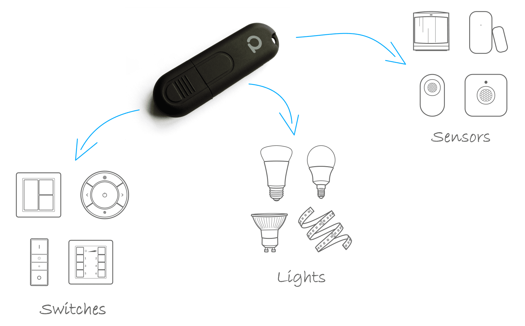 But it wasn't enough. I continually found temp sensors (which I now had in every single room) not being available so clearly something had to give. Fortunately, one of the joys of Zigbee is that - and I'm going to quote here - "all mains powered Zigbee devices, such as lights and sockets, act as repeaters and can route the signal". This is again from the Phoscon page on the ConBee II which they illustrate as follows: