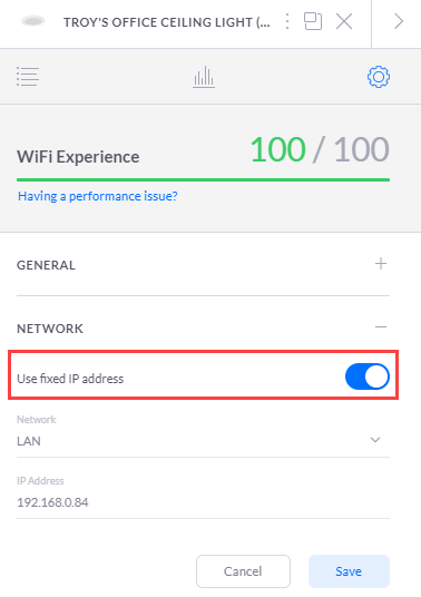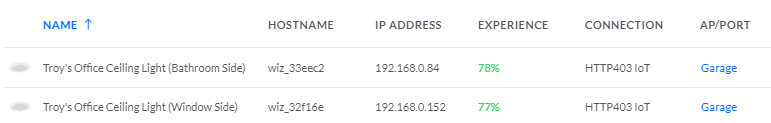 Then, one day, the lights stopped working. Why? They worked fine in the native Wiz app, why were they dead in HA? Back into the UniFi dashboard, down to the Wiz lights and... ah: