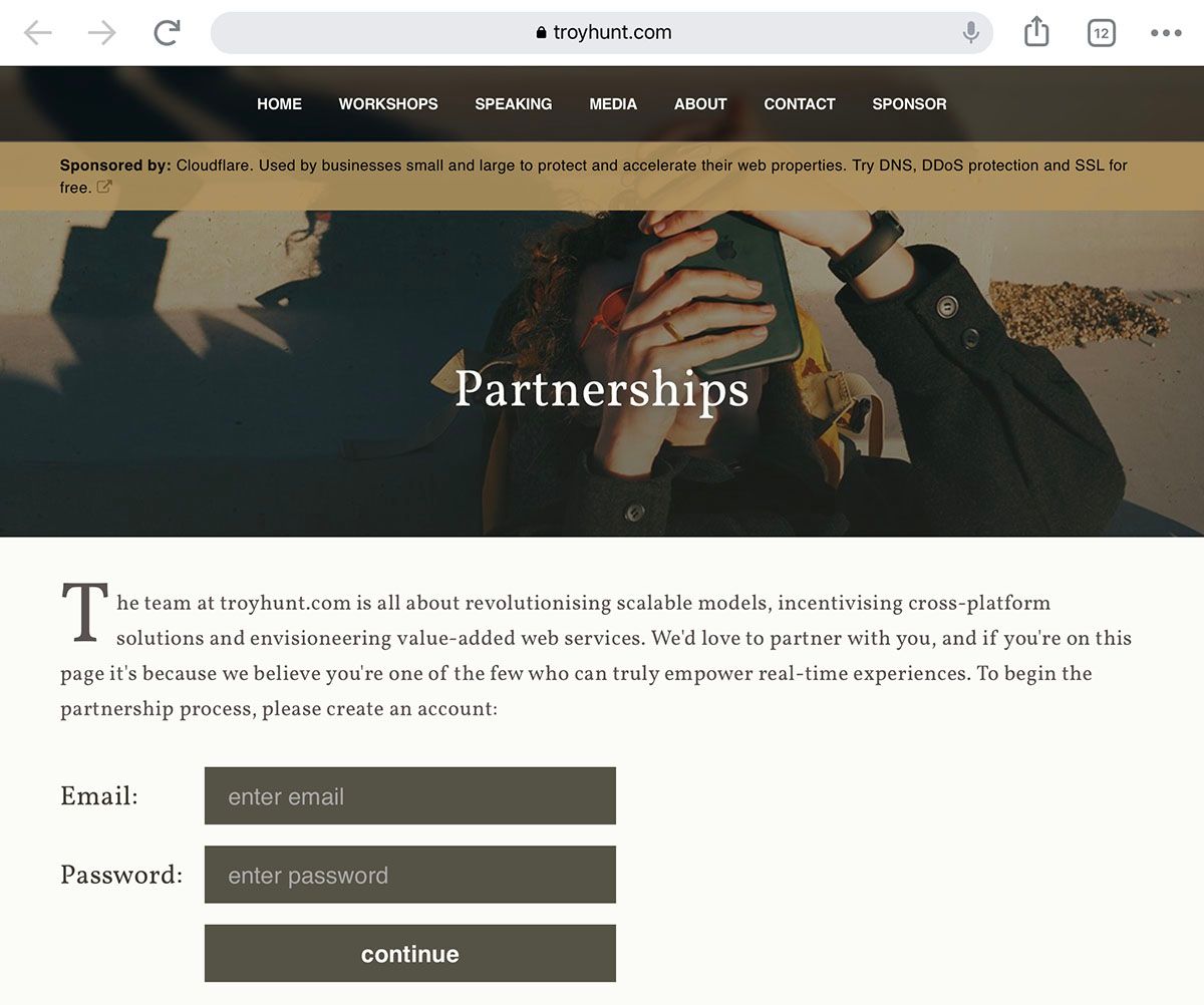 The kvKey is passed via the query string and the page invites the spammer to begin the process of becoming a partner. All they need to leave is an email address... and a password. That page then embeds 2 scripts from the Password Purgatory website, both of which you can find in the open source and public Github repository I created in the original blog post. Each attempt at creating an account sends off the password only to the original Password Purgatory API I created months ago, after which it responds with the next set of criteria. But each attempt also sends off both the criteria that was presented (none on the first go, then something increasingly bizarre on each subsequent go), the password they tried to use to satisfy the criteria and the kvKey so it can all be tied together. What that means is that the Cloudflare Workers KV entry created earlier gradually builds up as follows: