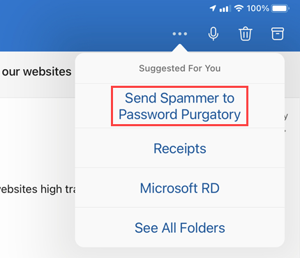Ugh. Nasty stuff, off to hell for them it is, and it all begins with filing the spam into a special folder called "Send Spammer to Password Purgatory":