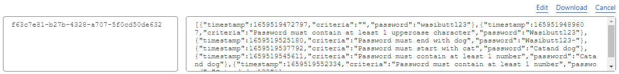 - Once the first password is logged, there's a 15 minute window within which any further passwords can be logged. The reason is twofold: firstly, I don't want to share the spammers attempts publicly until I'm confident no more passwords can be logged just in case they add PII or something else inappropriate. Secondly, once they know the value of the kvKey a non-spammer could start submitting logs (for example, when I tweet it later on or share it via this blog post).