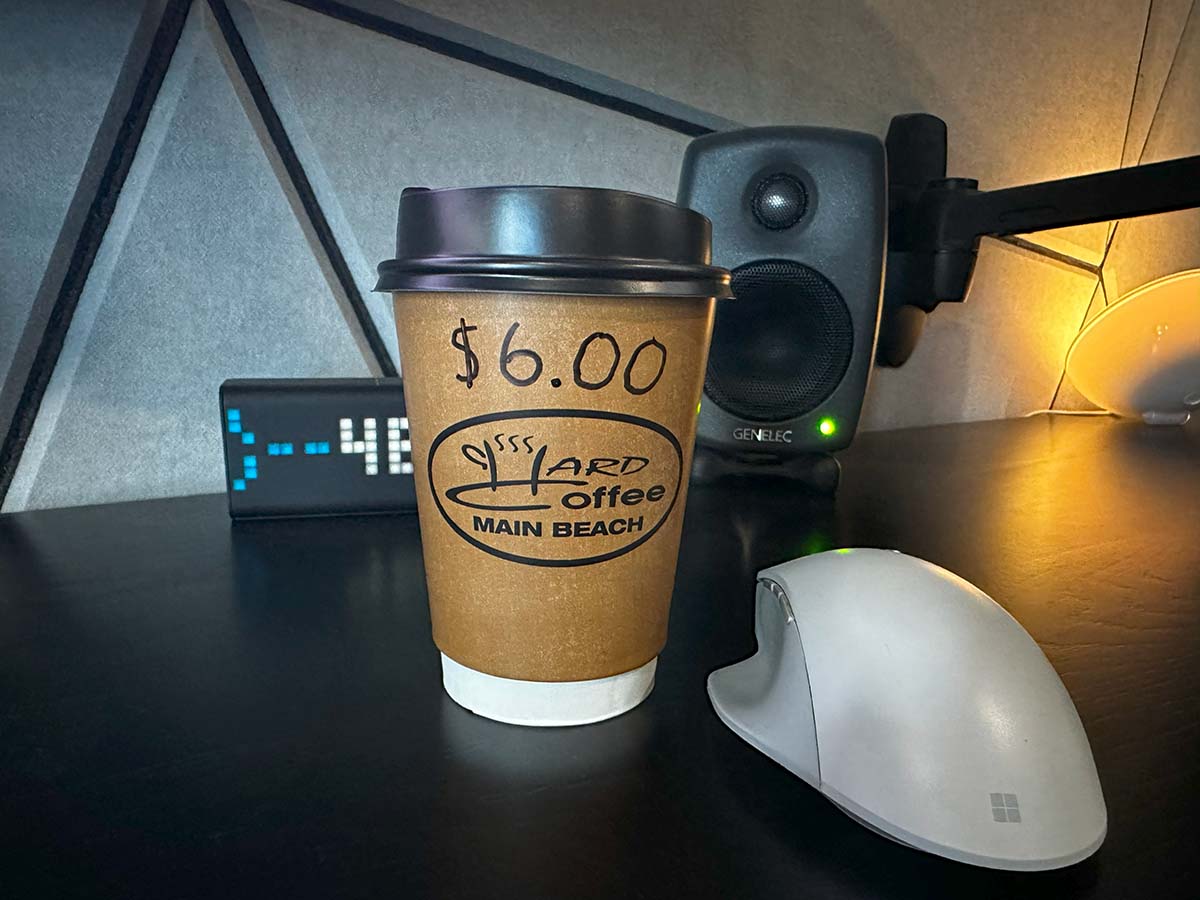 Finally, we wanted the first commercial tier to be easily affordable so that most people could access it without thinking twice about it. My measure for that has always been "the cost of a cup of coffee", so I went down to my favourite local and checked what I was blindly paying when I waved my watch in the general direction of the EFTPOS machine: