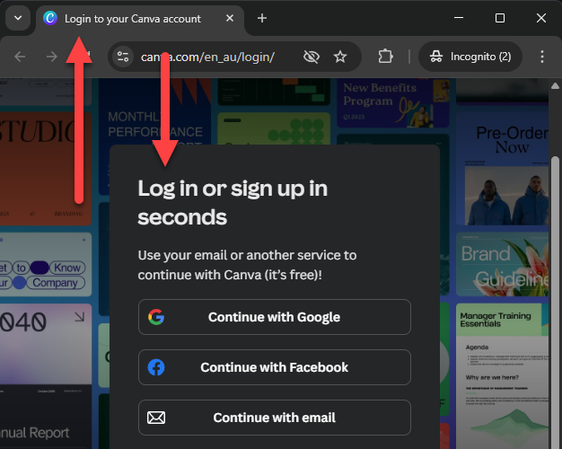 You can log in to Canva, which is clearly indicated by the HTML title, which suggests you're on the login page: