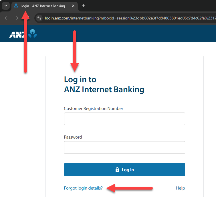 But the login page for ANZ bank requires to log in, unless you've forgotten your login details: